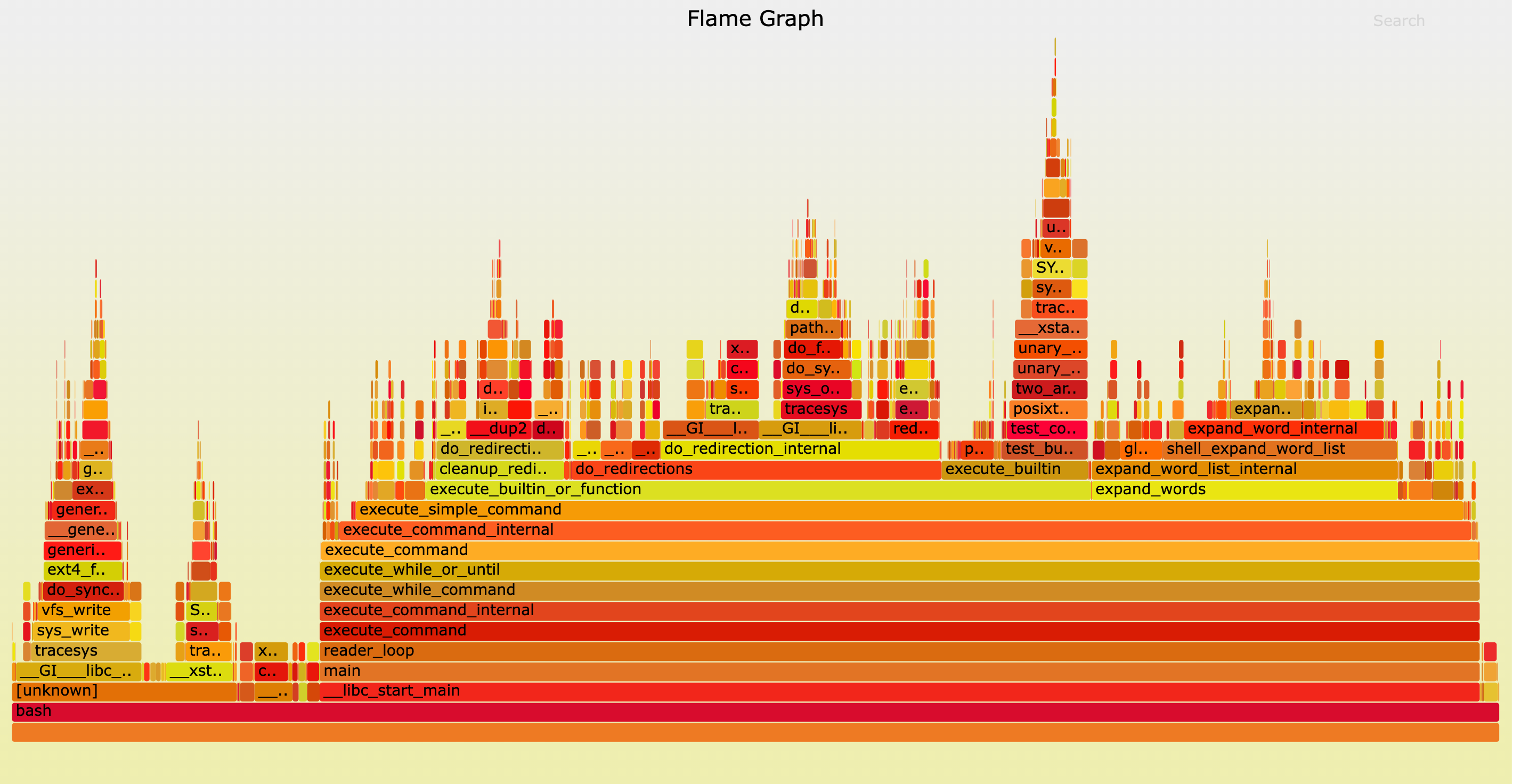 The y-axis shows stack depth (number of frames on the stack). The top box shows the function that was on-CPU. Everything beneath that is ancestry. The function beneath a function is its parent, just like the stack traces shown earlier. (Some flame graph implementations prefer to invert the order and use an “icicle layout”, so flames look upside down.)